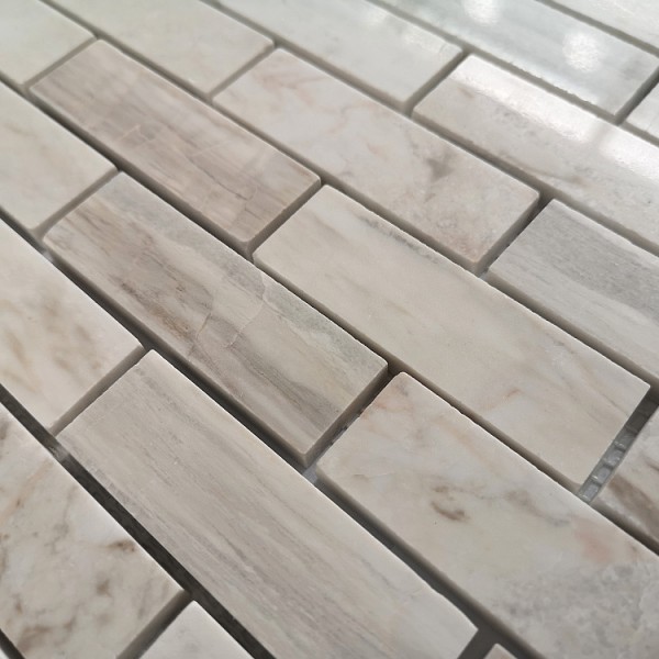 Мозаика из редкого и удивительного по красоте мрамора с серыми и розоватыми прожилками. Крупный чип позволяет увидеть красоту природного рисунка.