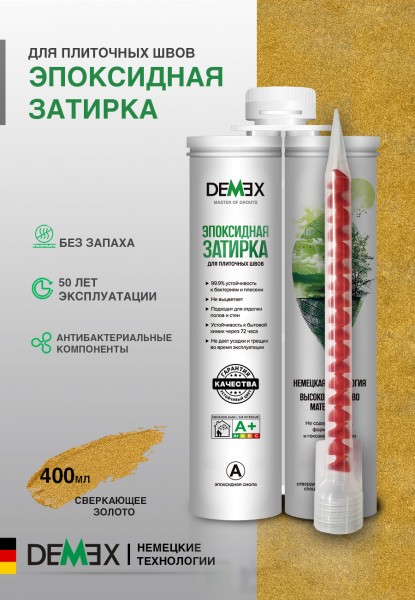 Затирка Demex эпоксидная двухкомпонентная для плиточных швов глянцевая DEMEX (008 Сверкающее золото) арт. DGE-008